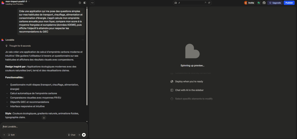 👉 Voir le résultat généré sur Lovable (à tester avec le prompt ci-dessus).